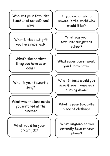 50 Life Group Ice Breaker Questions 1. If you had one wish for your small group, what would it be? What steps are you willing to take to make it come true? ... Document Retrieval